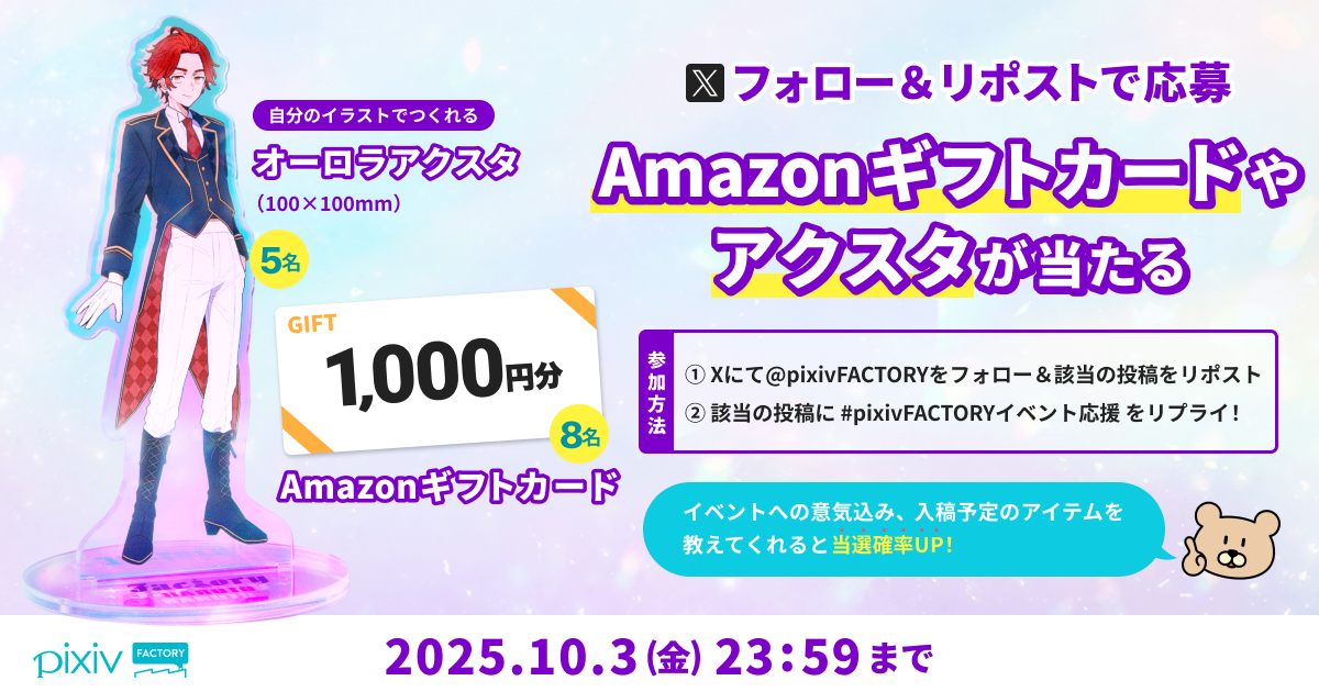 ・当選者様には、pixivFACTORY公式Xアカウントよりダイレクトメッセージにてご連絡いたします。