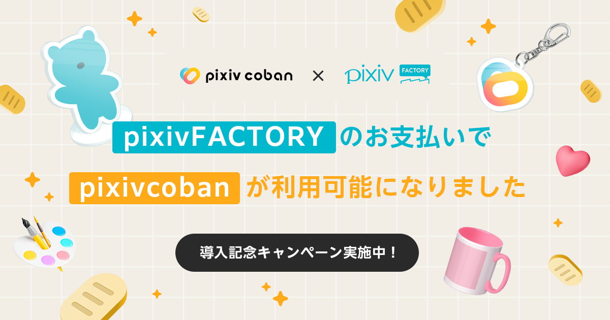 また、pixivcoban決済の導入を記念して、2025年12月8日(月)より「pixivcoban × pixivFACTORY #つくってシェアでpixivcobanをゲット!キャンペーン」を実施いたします。