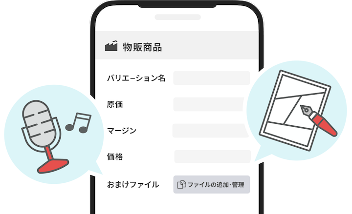 商品ページにファイルをアップロードするだけでとってもかんたん。